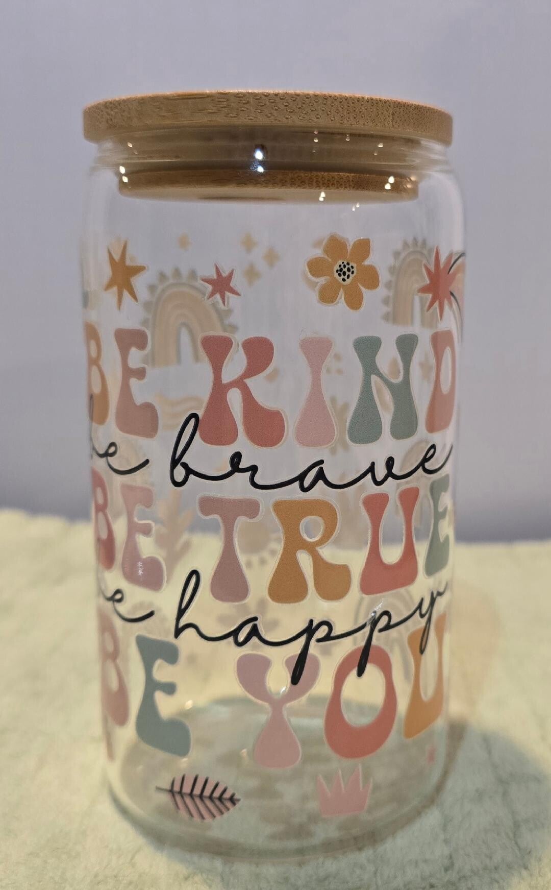 *16 oz glass cup with bamboo lid