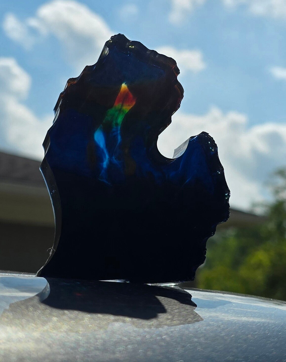 This one-of-a-kind resin sculpture captures the beauty of the Mitten State in swirling colors you won’t find anywhere else. Handcrafted with love right here in Michigan — because nothing beats homegrown creativity. 💙